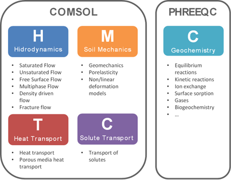 Figure 1 1. Processes that can be simulated with Comsol Multiphysics and PhreeqC, and can be included in iCP models.